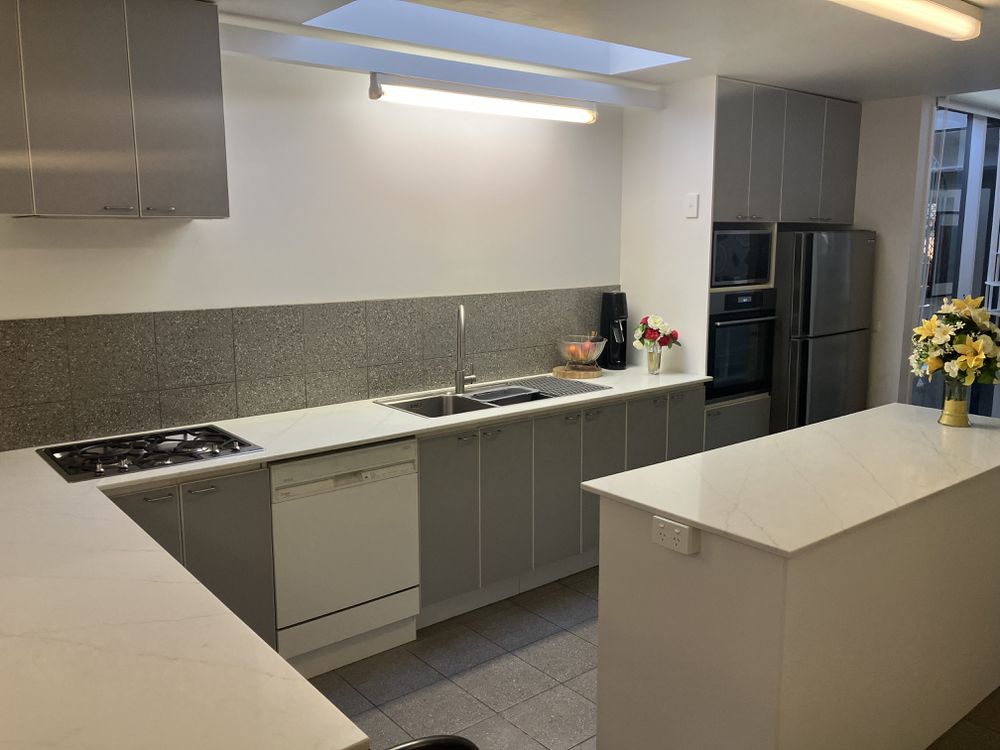 • Sun-drenched kitchen with brand-new stone benchtops and island