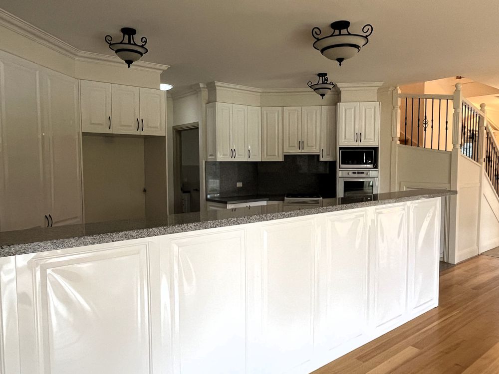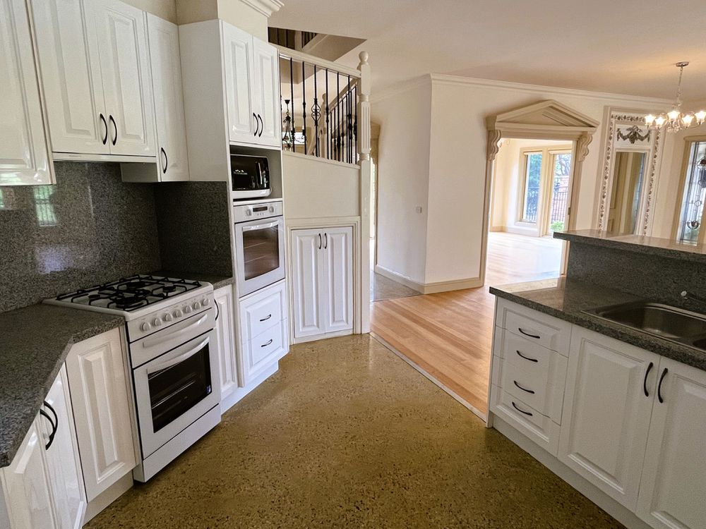 * The kitchen has generous amounts of cupboard and storage space, stone bench tops, dishwasher, plenty of bench area and the added bonus of two ovens, gas cook top and large pantry