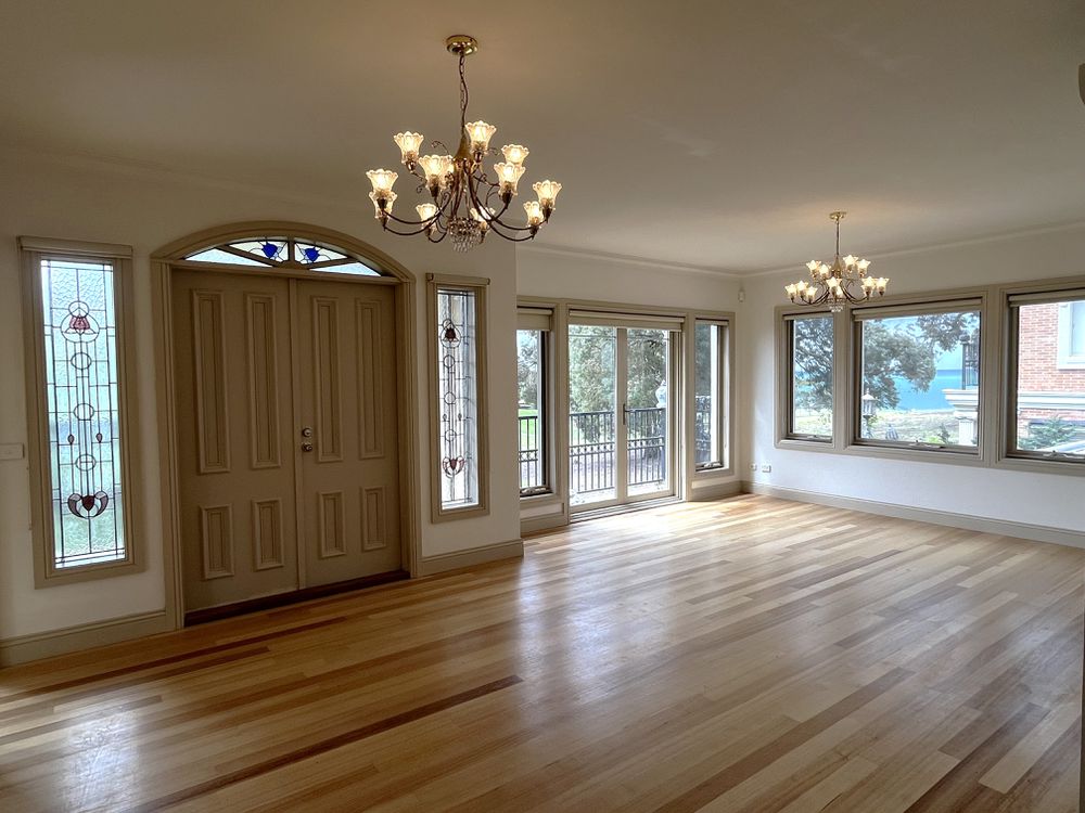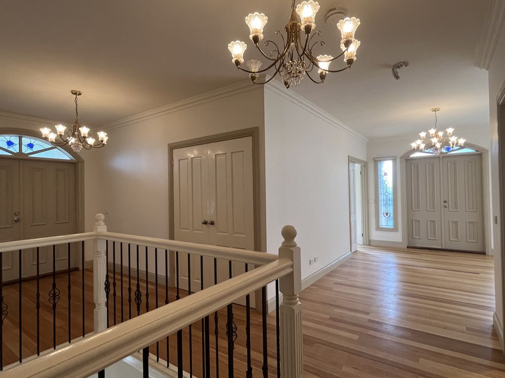 * Large, double front doors lead you though to the entry area lit with one of the many ornate light fittings throughout the home