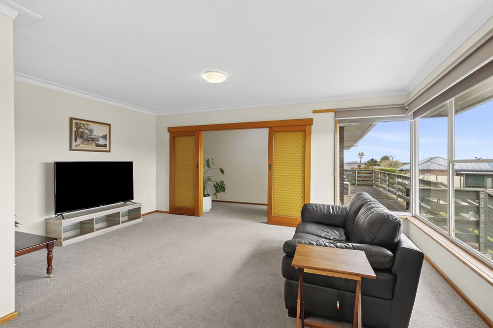 • Light-filled living area featuring expansive windows, an oil heater, and split-system comfort.