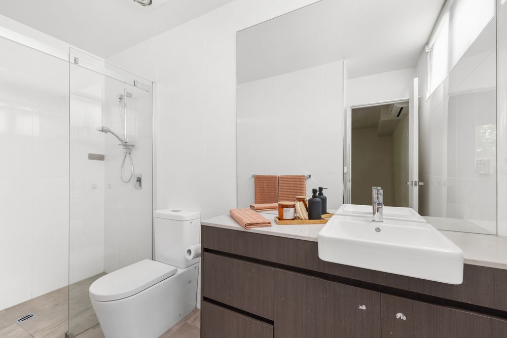 The ground floor hosts two generous bedrooms with built-in robes, a sleek fully tiled bathroom, and a private courtyard that offers a quiet place to relax. A separate laundry and thoughtful storage solutions enhance everyday ease.