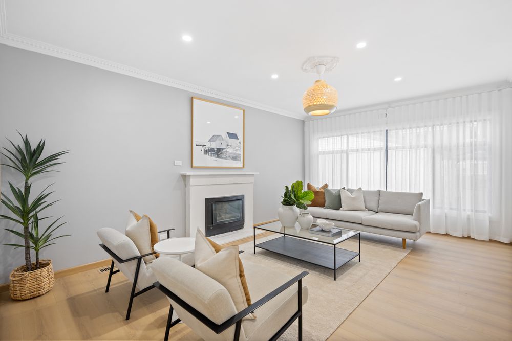 From the moment you step inside, you'll appreciate the thoughtful updates and light-filled interiors. The heart of the home is a modern kitchen with stone benchtops, sleek cabinetry, and brand-new appliances including dishwasher, oven, cooktop, and rangehood-perfectly positioned to service both everyday meals and larger gatherings. Two spacious living zones provide flexibility for family life and entertaining, complemented by ducted heating, a decorative fireplace, and warm ambient lighting.