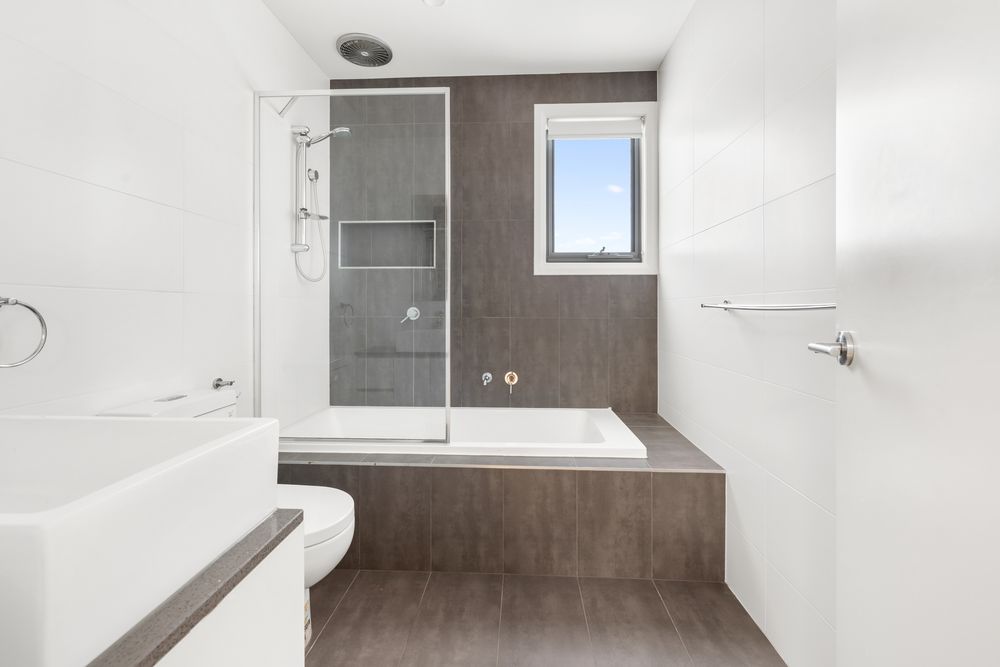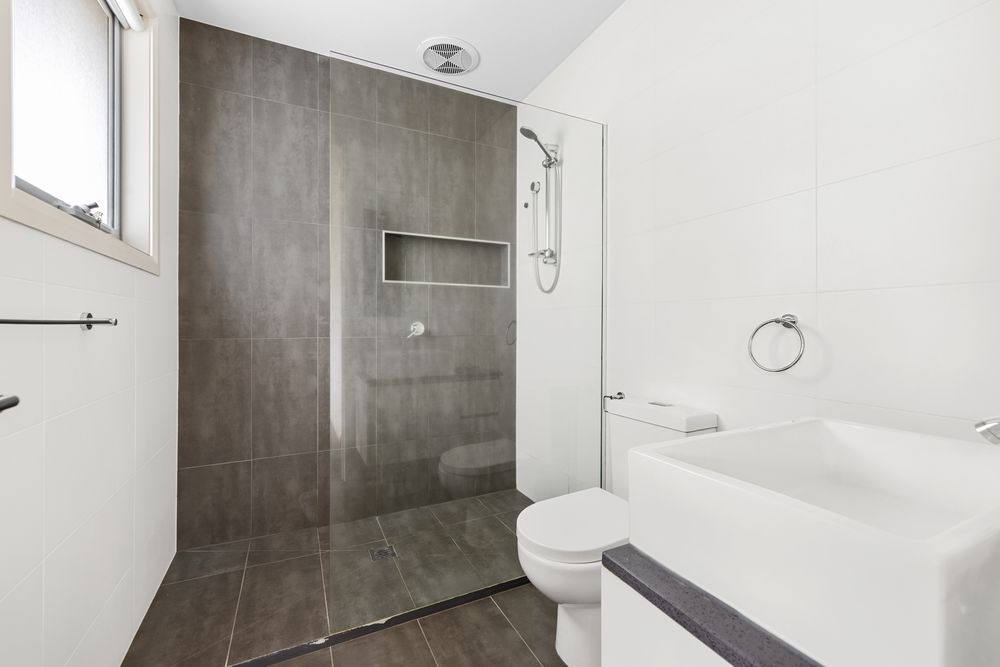 Comprising upstairs of 3 carpeted bedrooms with BIR's - Main bedroom with ensuite, and second bathroom with quality finishes.