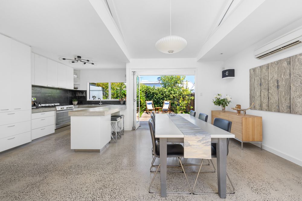 • Open kitchen and large dining area with polished concrete floors, flowing to the courtyard on one side and lush rear gardens and deck on the other