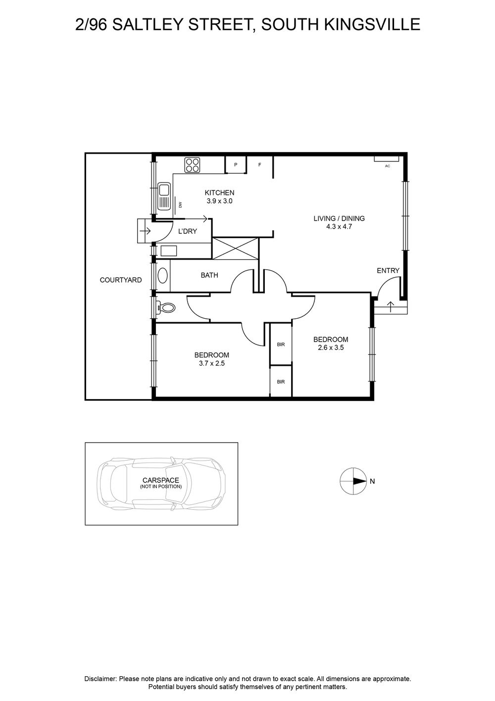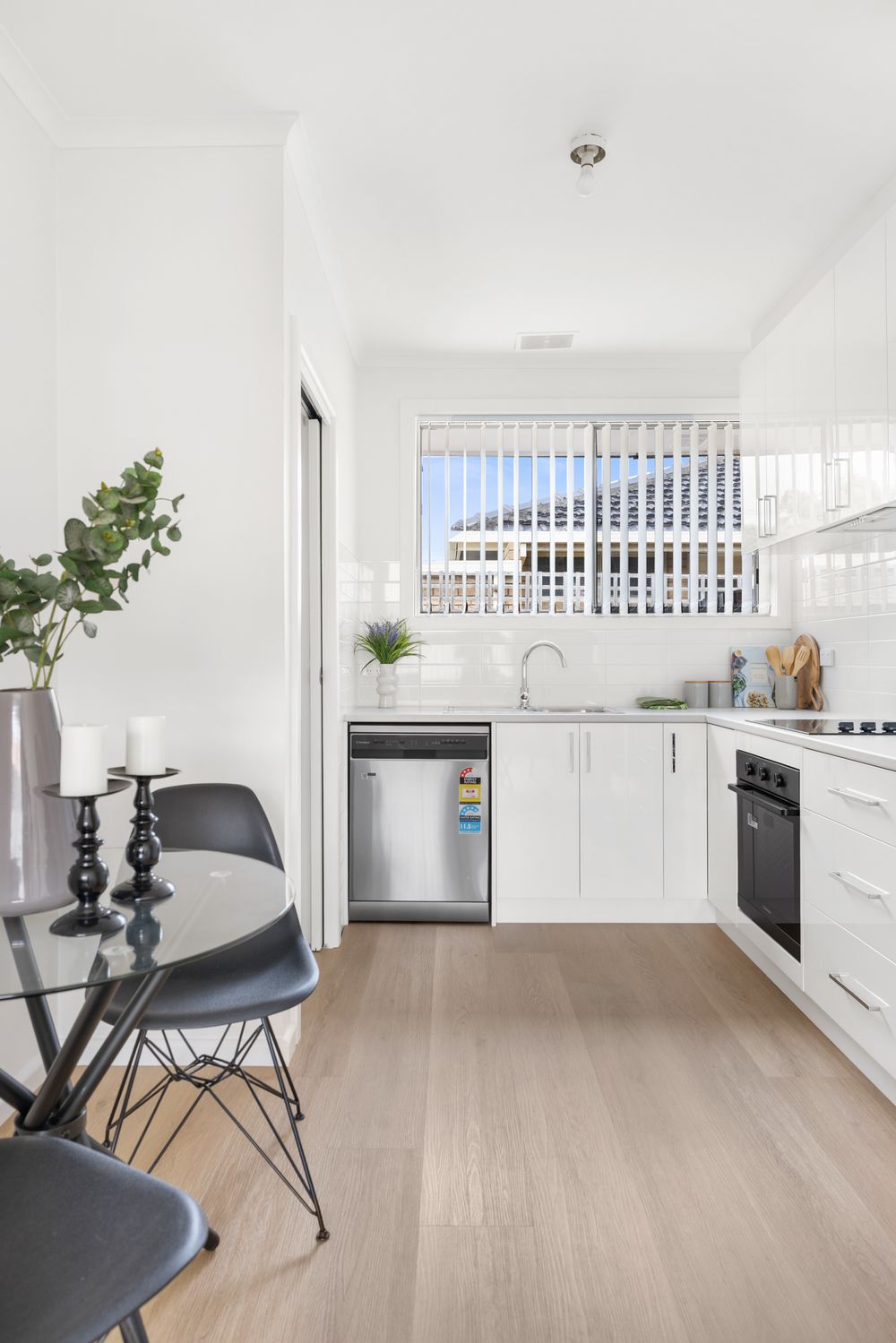Set in a quiet block of four, this updated two-bedroom unit offers modern finishes, a spacious lounge with heating, neat kitchen with electric cooking, central bathroom, separate laundry, private courtyard, and off-street parking for one car.