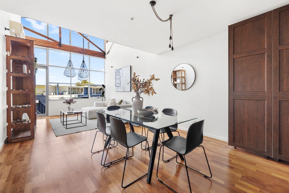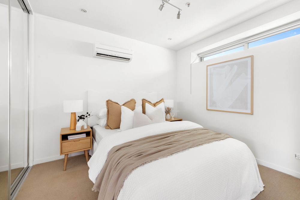 Stylish riverside converted warehouse in Footscray offering three bedrooms all with BIR's, two bathrooms, a euro laundry, two living zones and dual secure parking. Featuring soaring ceilings, natural light and a versatile mezzanine, this home delivers modern comfort with lifestyle amenities, moments from cafes, transport, arts centre and scenic river trails.